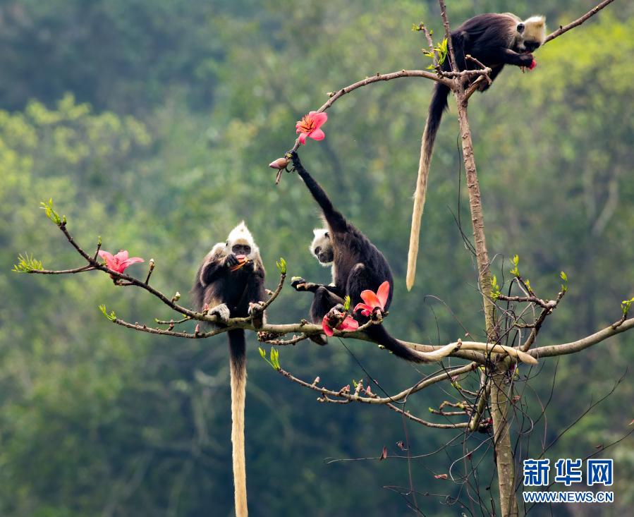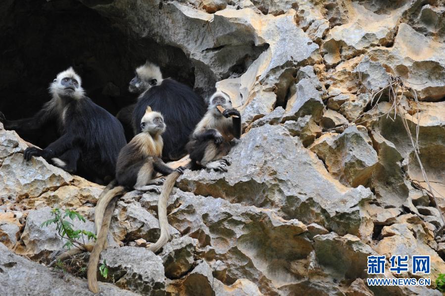 2020年12月19日,在廣西崇左白頭葉猴國家級自然保護區(qū)拍攝的白頭葉猴(資料照片)。新華社發(fā)(廣西崇左白頭葉猴國家級自然保護區(qū)提供)
