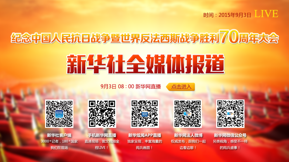 中國人民抗日戰(zhàn)爭暨世界反法西斯戰(zhàn)爭勝利70周年紀念活動。