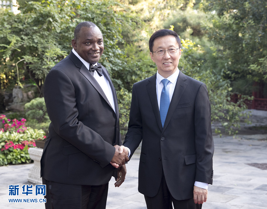 9月6日,中共中央政治局常委、國務院副總理韓正在北京釣魚臺國賓館會見岡比亞總統(tǒng)巴羅。 新華社記者 王曄 攝