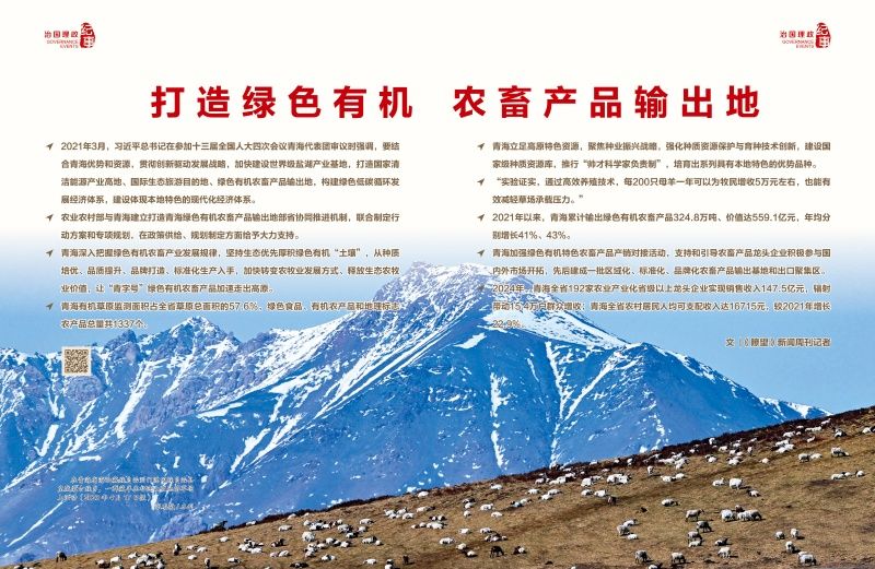 2021年以来,农业农村部与青海建立打造青海绿色有机农畜产品输出地部省协同推进机制,联合制定行动方案和专项规划,在政策供给、规划制定方面给予大力支持。