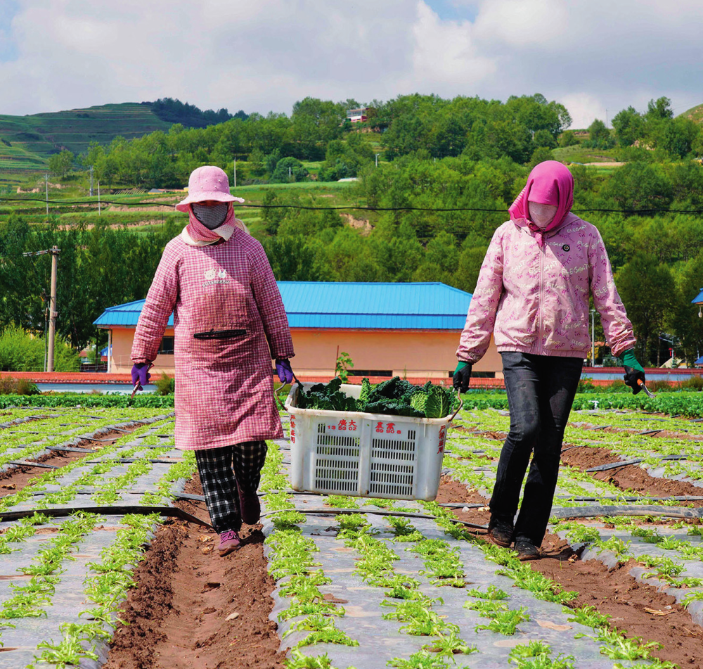 青海省海东市互助土族自治县台子乡塘巴村村民在“供港澳蔬菜生产基地”搬运蔬菜(2024年8月15日摄)王艳摄/本刊