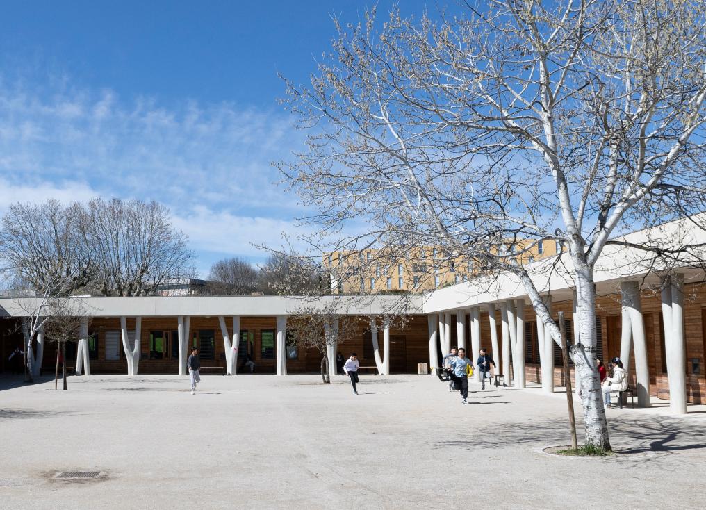 3月12日,在法国马诺斯克,普罗旺斯-阿尔卑斯-蓝色海岸大区国际学校学生在校园内玩耍。新华社记者 邬惠我 摄