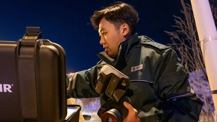 晚上9点,刘峻男进入长春冰雪新天地园区内,对电缆线、环网柜、开闭所、箱式变电站等设施进行逐一巡查,细致记录每个数据参数。“今年景区活动丰富多样,我们更要提前检查好电路情况,保障用电安全。”刘峻男说。
