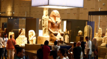 10月14日,游客在位于埃及吉萨省的大埃及博物馆参观。