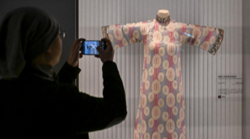 12月30日,观众在“来!听色彩讲故事”故宫教育体验展上用手机参与互动。