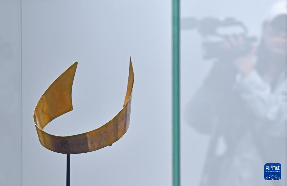 4月14日,媒体记者在拍摄哥伦比亚头饰。