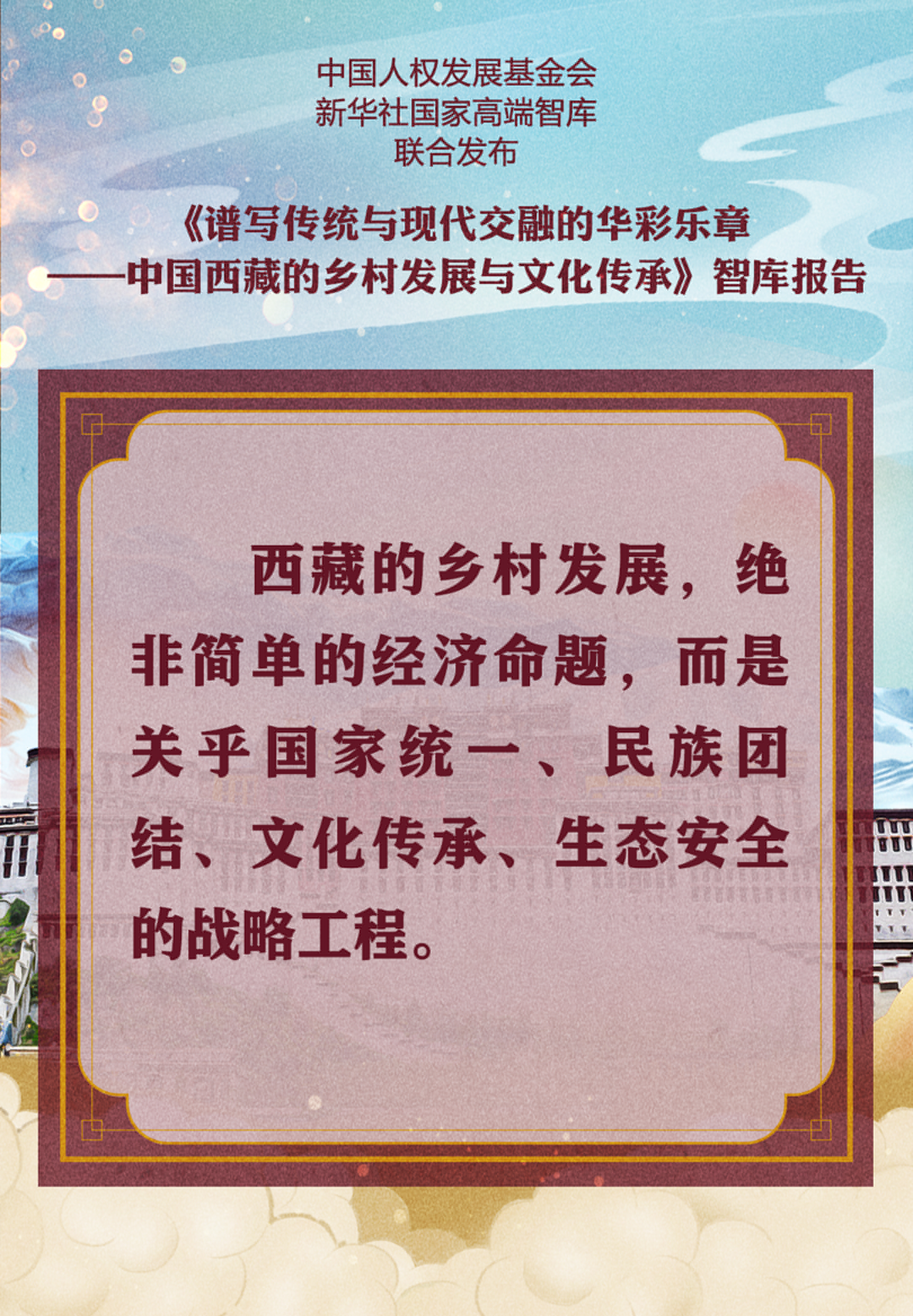 中国人权发展基金会、新华社国家高端智库10月16日在北京联合发布中英文智库报告《谱写传统与现代交融的华彩乐章——中国西藏的乡村发展与文化传承》。