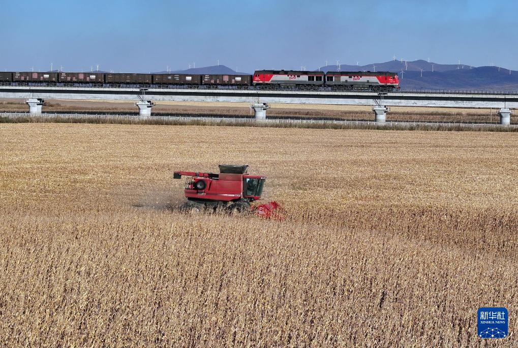 10月18日,一列满载进口物资的货物列车驶向中国铁路哈尔滨局集团有限公司绥芬河站(无人机照片)。