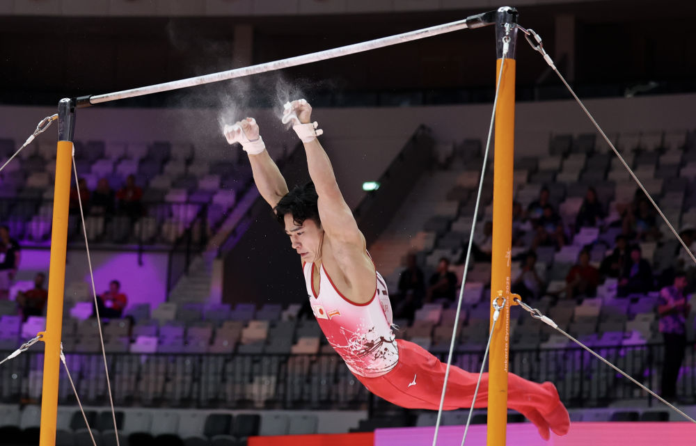 首个比赛日共进行了六组男子资格赛,日本队两位男子全能“王牌之战”备受关注。24岁的桥本大辉曾在东京奥运会夺得全能冠军,同时他也是世锦赛男子全能卫冕冠军;21岁小将冈慎之助在巴黎奥运会更是风光无限,他收获男子全能、男子团体、男子单杠三枚金牌。