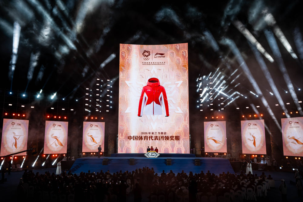 10月24日,2026年米兰冬奥会中国体育代表团领奖服在2025中国户外运动产业大会开幕式上亮相。新华社记者 胡超 摄