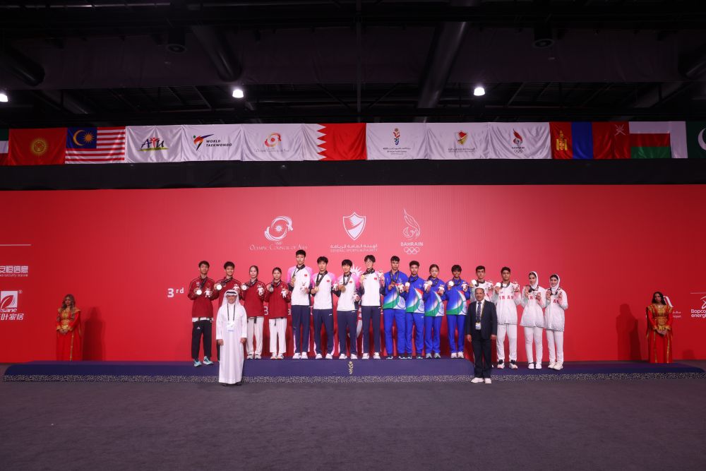 跆拳道混合团体比赛颁奖仪式。巴林亚青会组委会供图