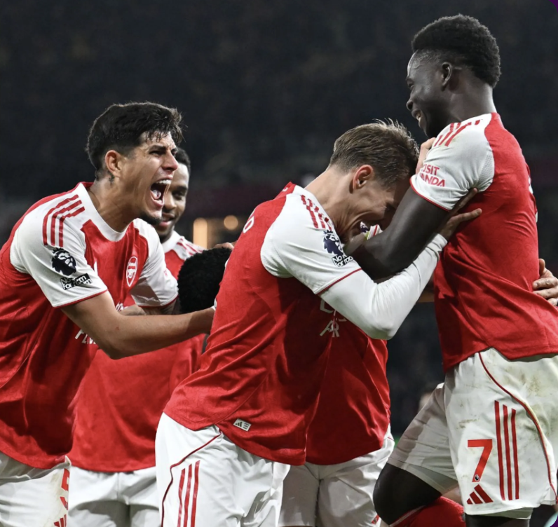 这场惊心动魄的胜利让阿森纳暂时领先曼城5分。后者将于本周末客场挑战水晶宫队。