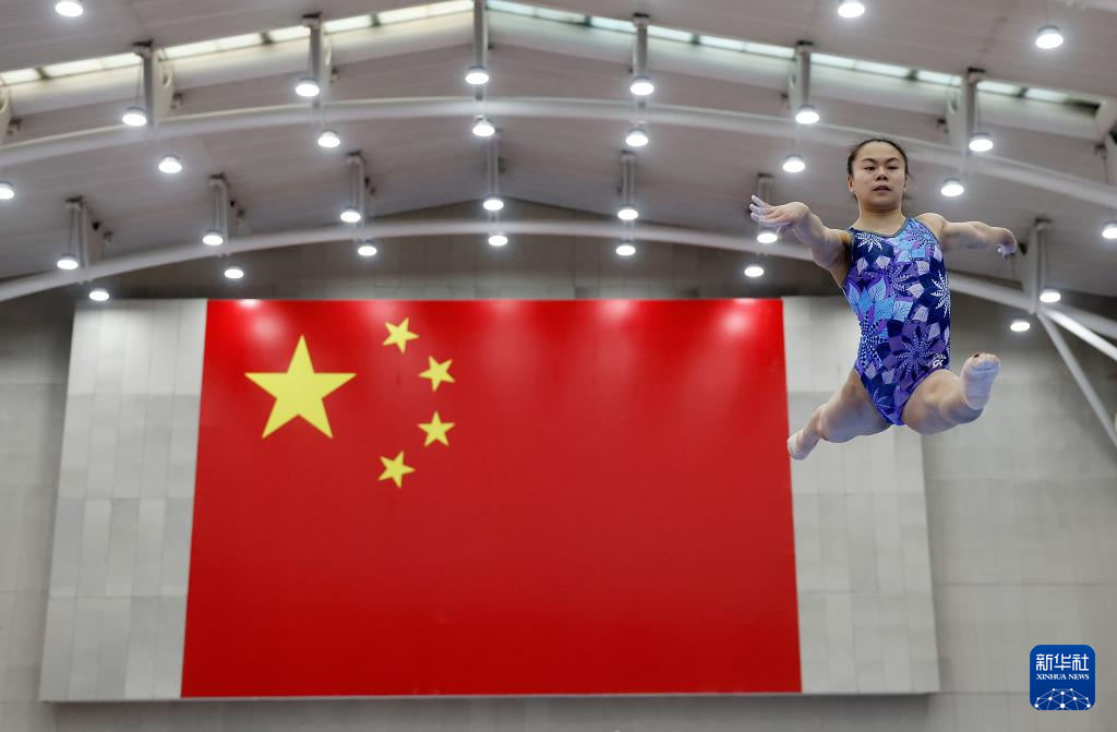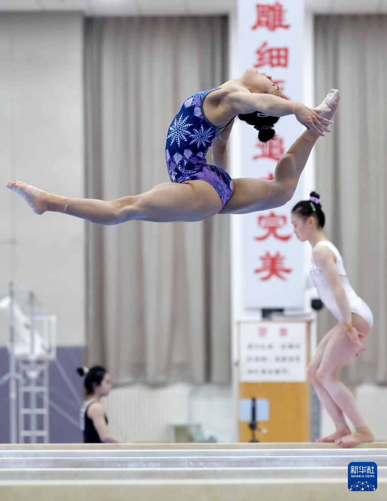 1月31日,柯沁沁在平衡木训练中。