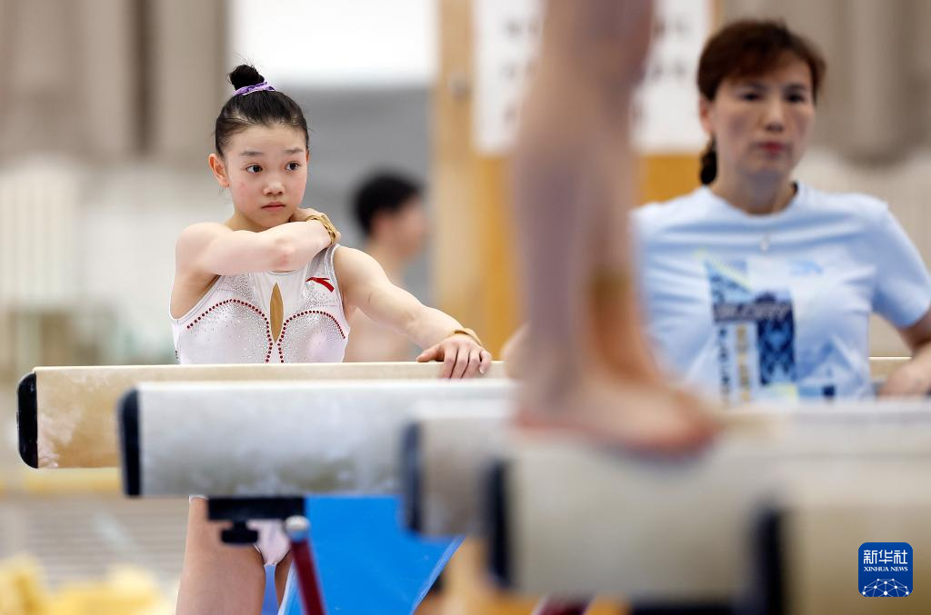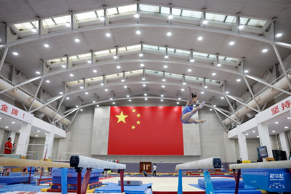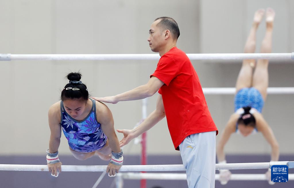 1月31日,张清颖在高低杠训练中。