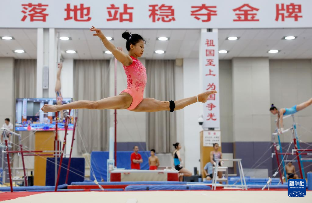 1月31日,选手们在平衡木训练中。