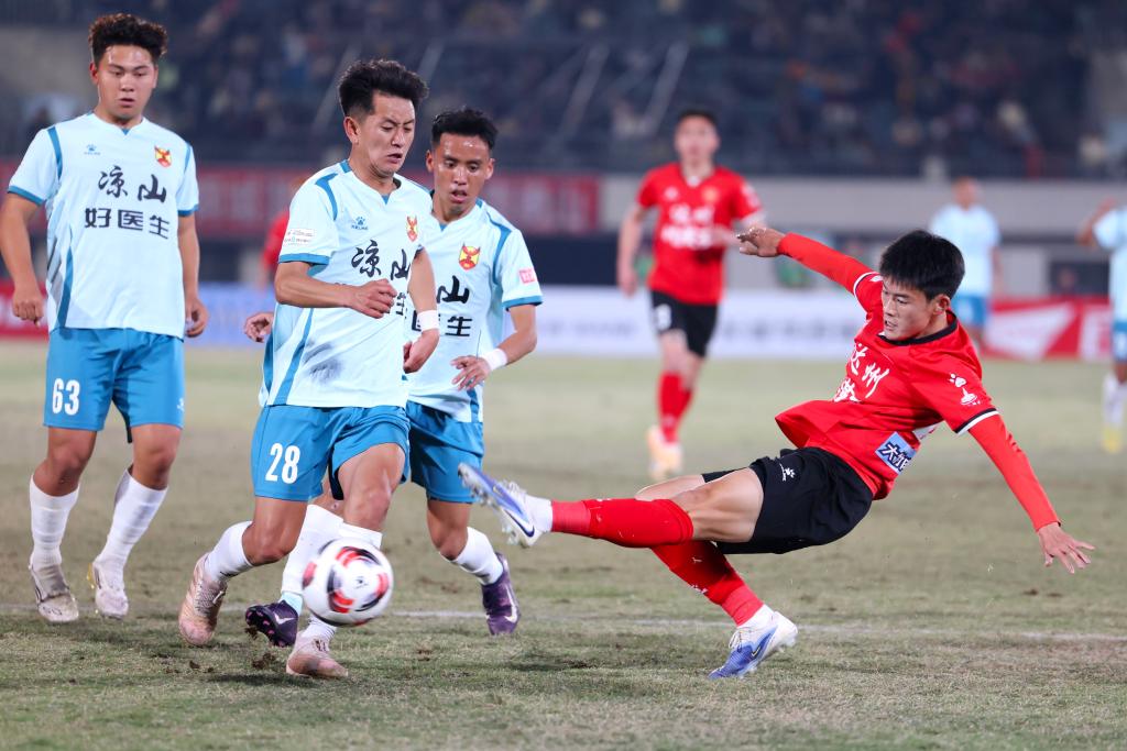 场上的气质同样鲜明。凉山队阵中多名彝族球员身体强壮、冲击力十足,达州队也不甘示弱,逼抢、推进、对抗都透着一股硬朗。看台上的呐喊与场上的节奏交织在一起,让现场所有人血脉偾张。