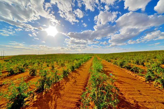 这里物华天宝,枸杞享誉天下。中宁地处世界公认的北纬37°黄金产业带,“两河三山”在此汇聚,独特的地理环境、优越的气候条件、先进的栽植技术,造就了中宁枸杞道地珍品的独特品质。中宁枸杞成为载入《中华人民共和国药典》的唯一药食同源枸杞品系。已有4000多年的文字记载史、2000多年的入药史和600多年的人工种植史,具有滋补肝肾、生精补髓、明目安神等功效。作为全国最大枸杞种质资源、科技创新、精深加工和交易集散基地,枸杞成就了中宁,中宁成全了枸杞,培育出“玺赞”“早康”“杞滋堂”等一批现代农业龙头企业,推出枸杞原浆、果酒、芽茶等系列产品十大类120余种,全国65%的枸杞在中宁交易集散,中宁枸杞区域品牌价值达到205亿元,是中宁乃至宁夏面向全国、走向世界的“红色名片”。