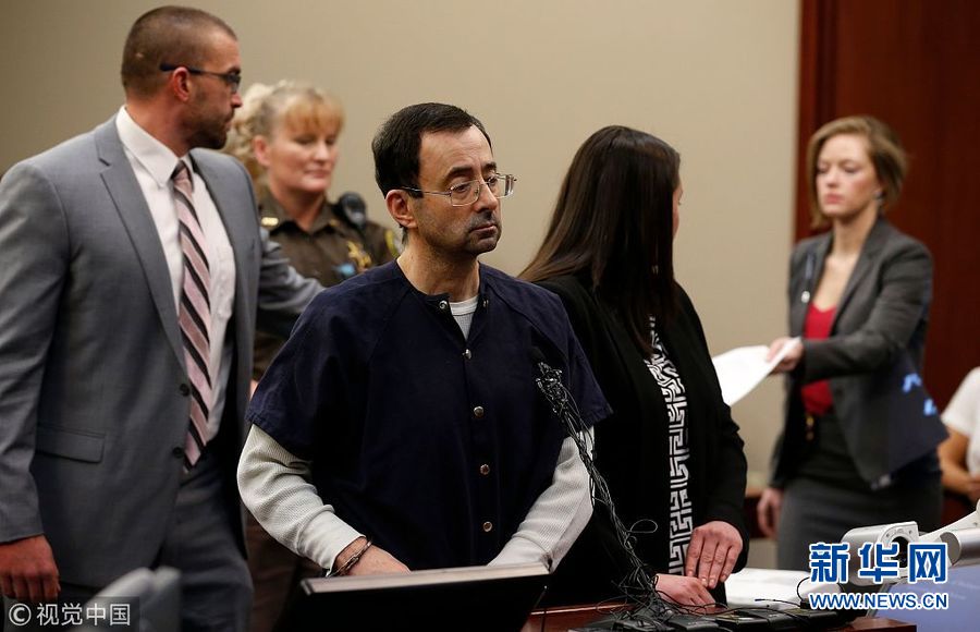 1月24日,美國(guó)密歇根州蘭辛,美國(guó)奧運(yùn)體操隊(duì)前隊(duì)醫(yī)拉里·納沙因性侵被判處40-175年監(jiān)禁。過(guò)去7天,超過(guò)150名女性向法官證實(shí),自己曾是納沙的性侵對(duì)象,其中包括多名兒童。在法院宣讀的一份聲明中,納沙表示自己對(duì)受害者的歉意已“超出言語(yǔ)的表達(dá)范圍”。54歲的納沙1996年至2015年間在美國(guó)體操協(xié)會(huì)擔(dān)任醫(yī)師。(圖片來(lái)源:視覺(jué)中國(guó))