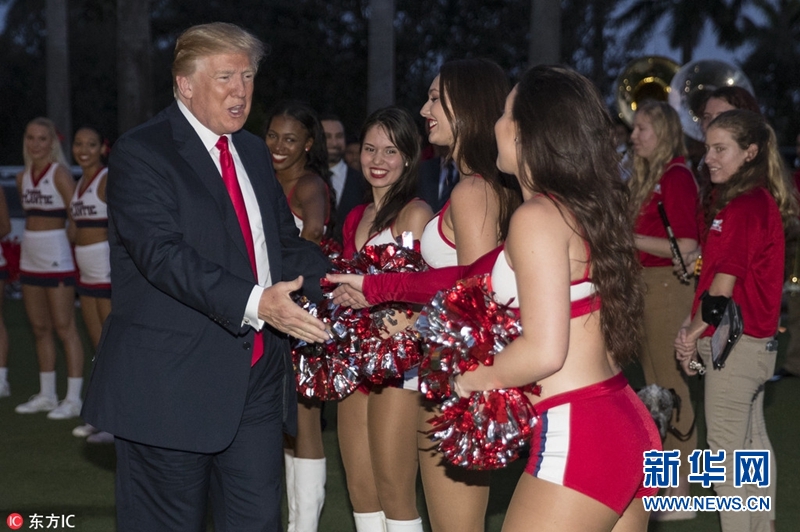 特朗普夫婦出席超級(jí)碗派對(duì) 與美女啦啦隊(duì)員握手(圖)