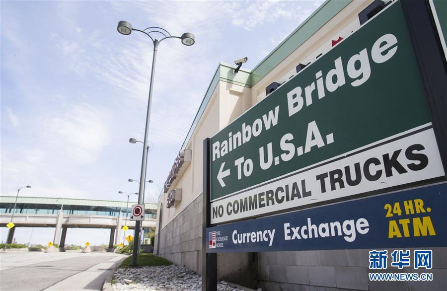 這是5月19日在位于加拿大安大略省尼亞加拉瀑布的彩虹橋旁拍攝的加美邊境地帶。新華社發(fā)(鄒崢 攝)