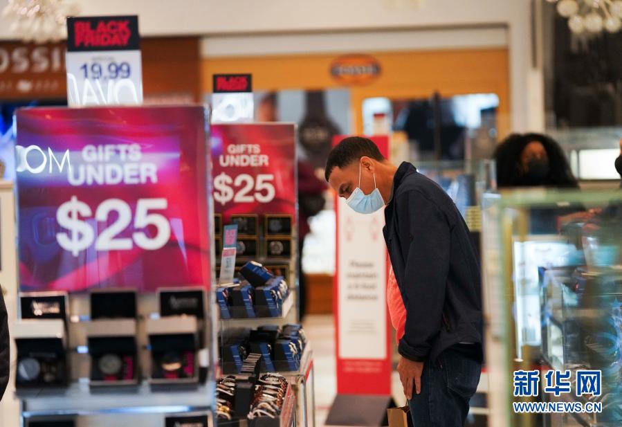 受新冠疫情影響,今年美國“黑色星期五”購物促銷日前往商店購物的人數(shù)較往年減少。